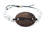 Este brazalete único está elaborado con cáscara de coco reciclado, proporcionando un aspecto rústico y atractivo. Este modelo tiene una gran resistencia debido al material natural y muy resistente usado. Ideal para eventos en playas, resorts o temáticas relacionadas con la naturaleza. Este diseño existe con un corte ovalado y un enfoque ecológico.